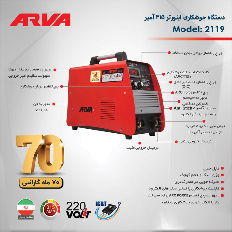 اینورتر جوشکاری ۳۱۵ آمپر IGBT مدل ۲۱۱۹ آروا